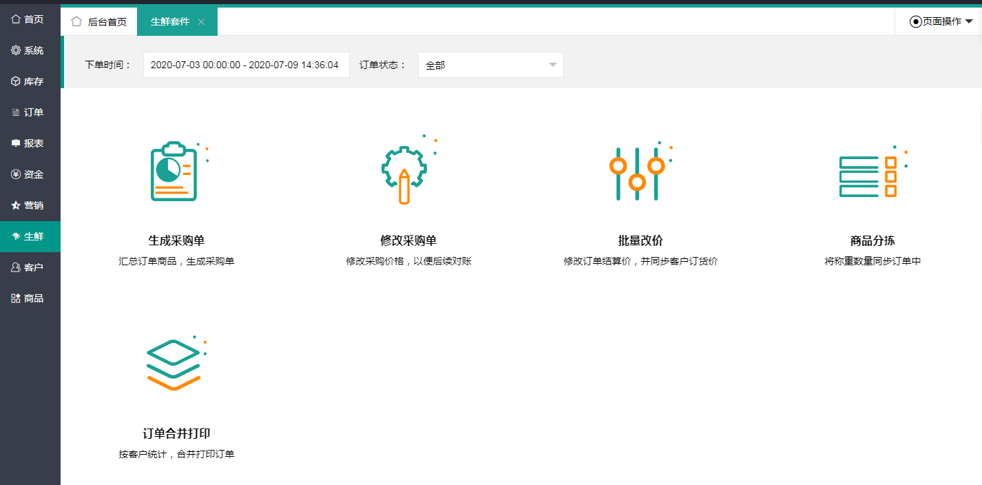 系統有專門的生鮮套件,分揀功能更適用于生鮮行業,因為大部分的生鮮商品的稱重都不是整數,實時同步訂單信息。