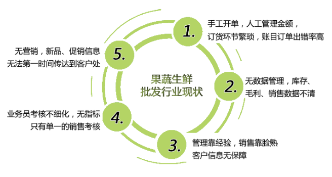 生鮮配送為什么不賺錢呢?我們都知道生鮮行業利潤薄,損耗大,再加上需要大量的人工分揀產品、配送等,無形之中增加了企業的成本。傳統的生鮮配送流程是客戶打電話或者微信下單,商家安排人跟單,按照客戶的訂單需求進行匯總,然后去倉庫一個個分揀稱重打包,再去裝車發貨給客戶,這樣的流程比較繁瑣,需要消耗大量的人力物力,工作效率低,一旦出現失誤,很難找到責任人。