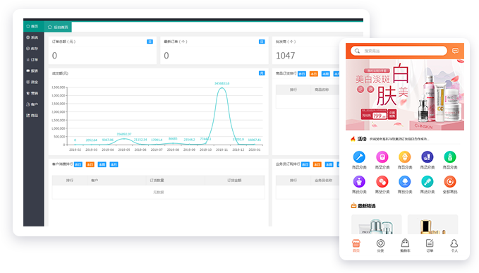 便捷的移動訂貨商城,全面展示自己的商品,上新一鍵群發(fā),用戶最短時間了解新品,便于新品的推廣與銷售