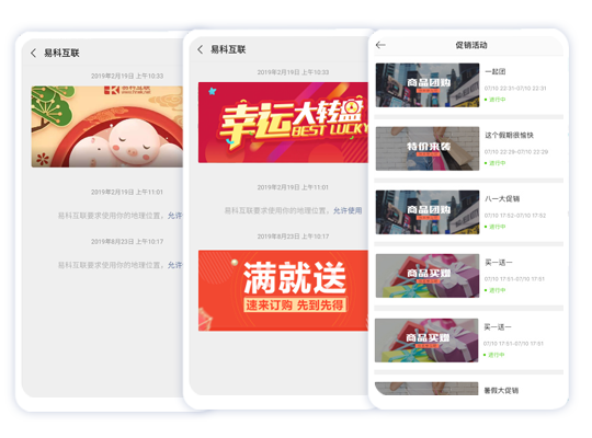 通過公眾號及時廣告活動通知,讓您的活動信息一鍵傳達;讓利價格立即體現(xiàn),無需長時間準備,活動效果可統(tǒng)計,可分析!